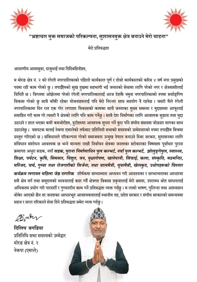 मोरङ–२ मा दिलीप बडियाको प्रतिबद्धता : पूर्वाधारदेखि रोजगारीसम्म प्राथमिकता ।थारू पाेर्टल